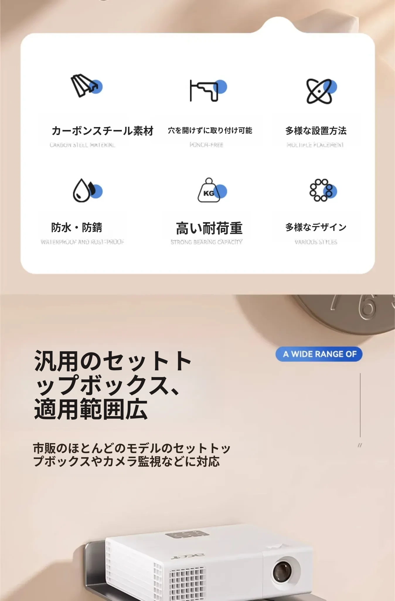 クリームホワイト【セットトップボックス/プロジェクター】大サイズスタンド