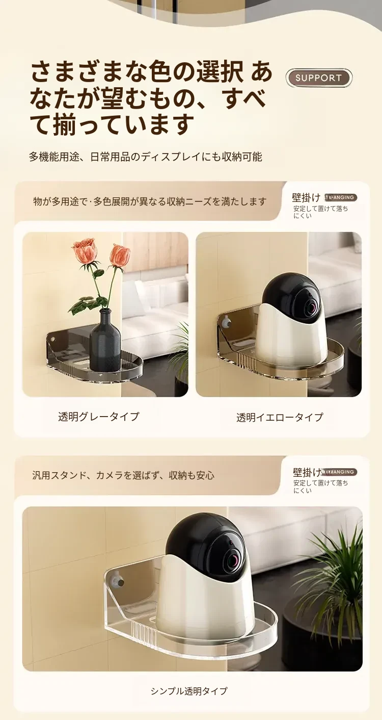 家庭用カメラ壁掛け収納棚 - 穴を開けずにルーターやテレビボックスを設置可能!室内外問わず、万能監視支架で安心のセキュリティを実現。
