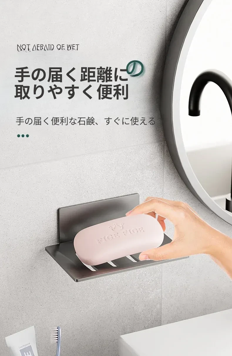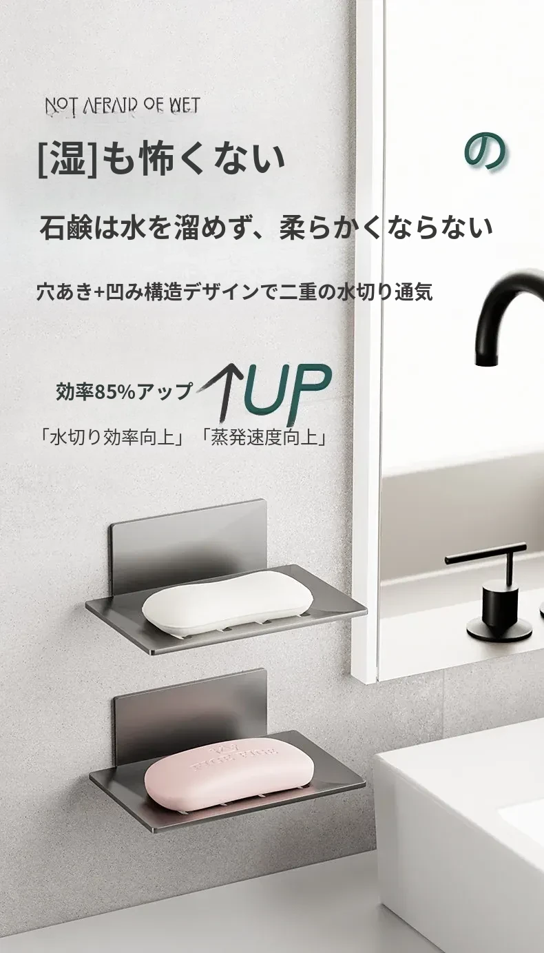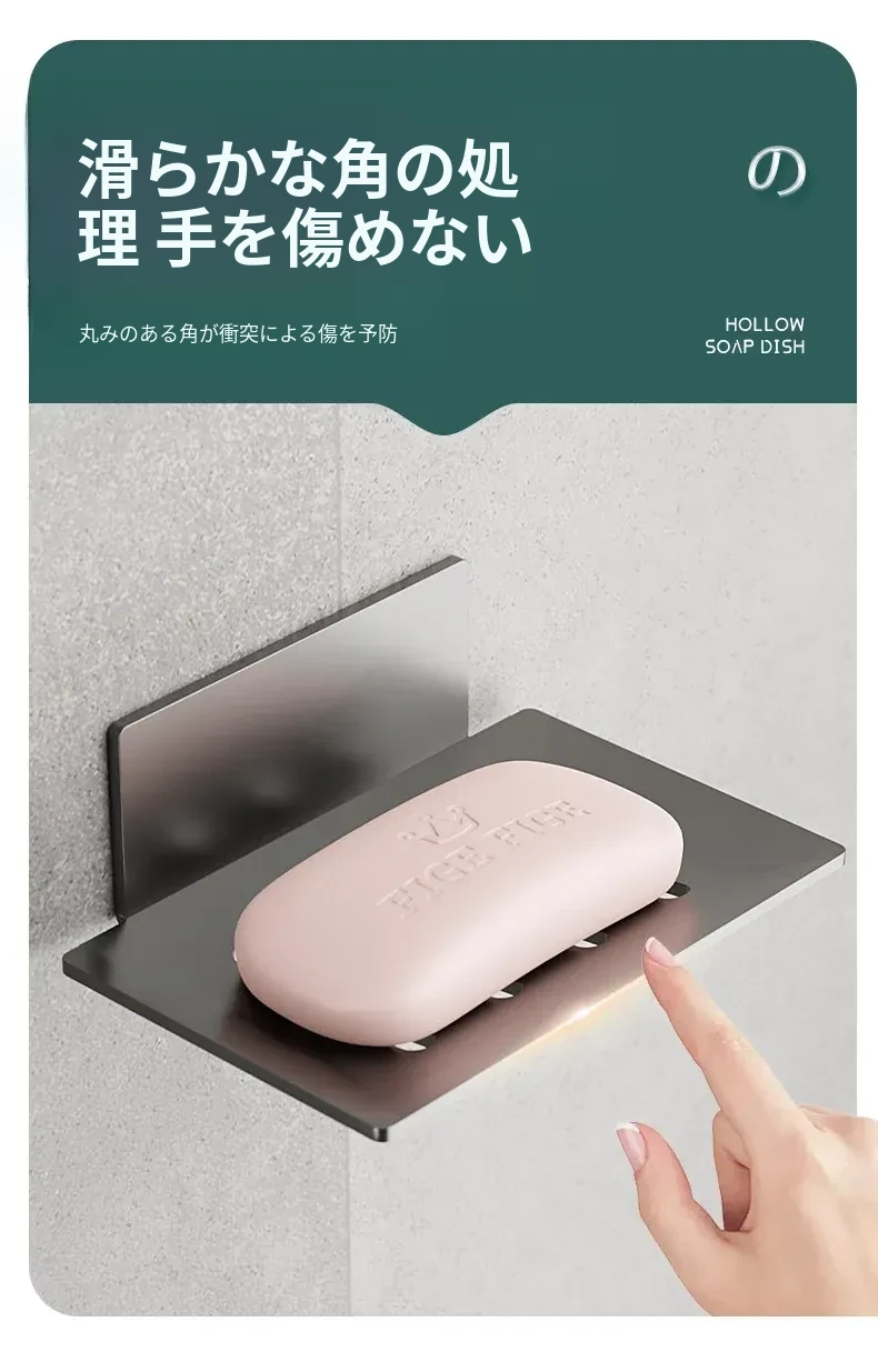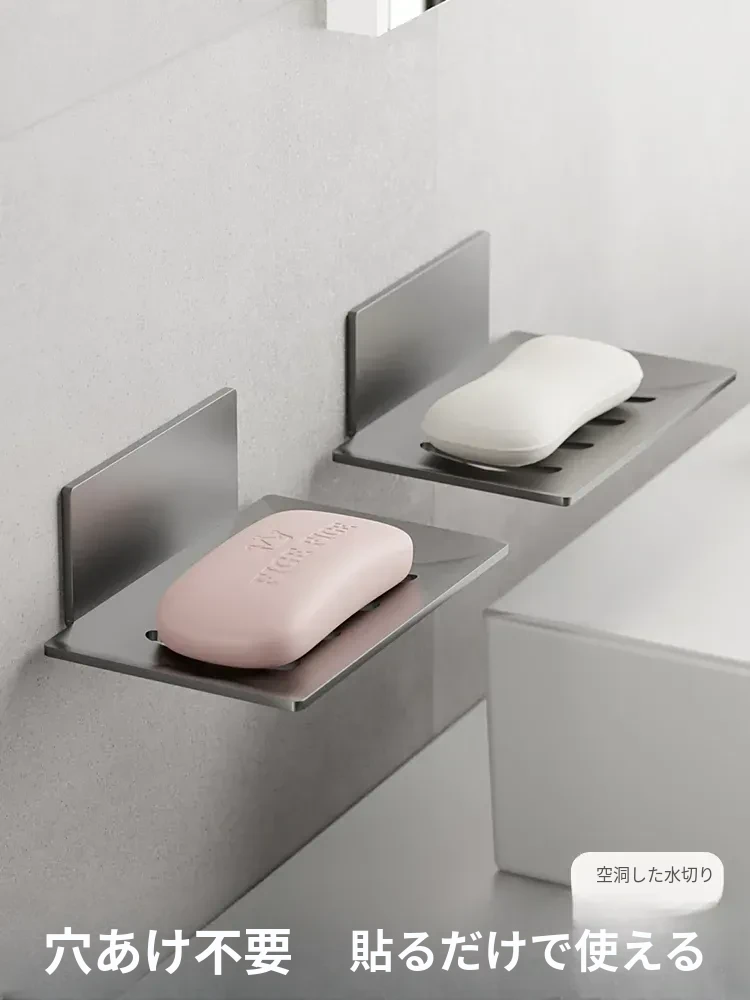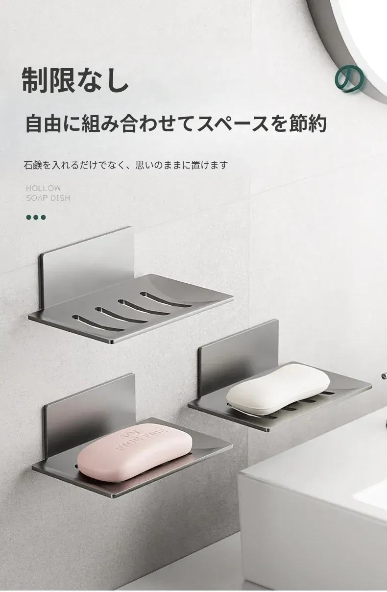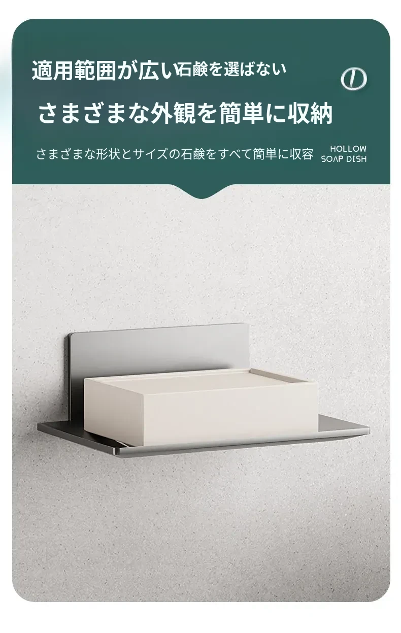 壁掛けソープホルダー - おしゃれで便利な石鹸置き、浴室やトイレに最適!水切れ抜群で、穴あけ不要の簡単取り付け。清潔感あふれる空間を演出します!