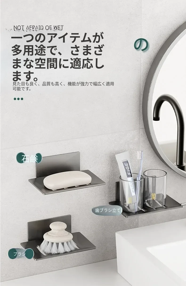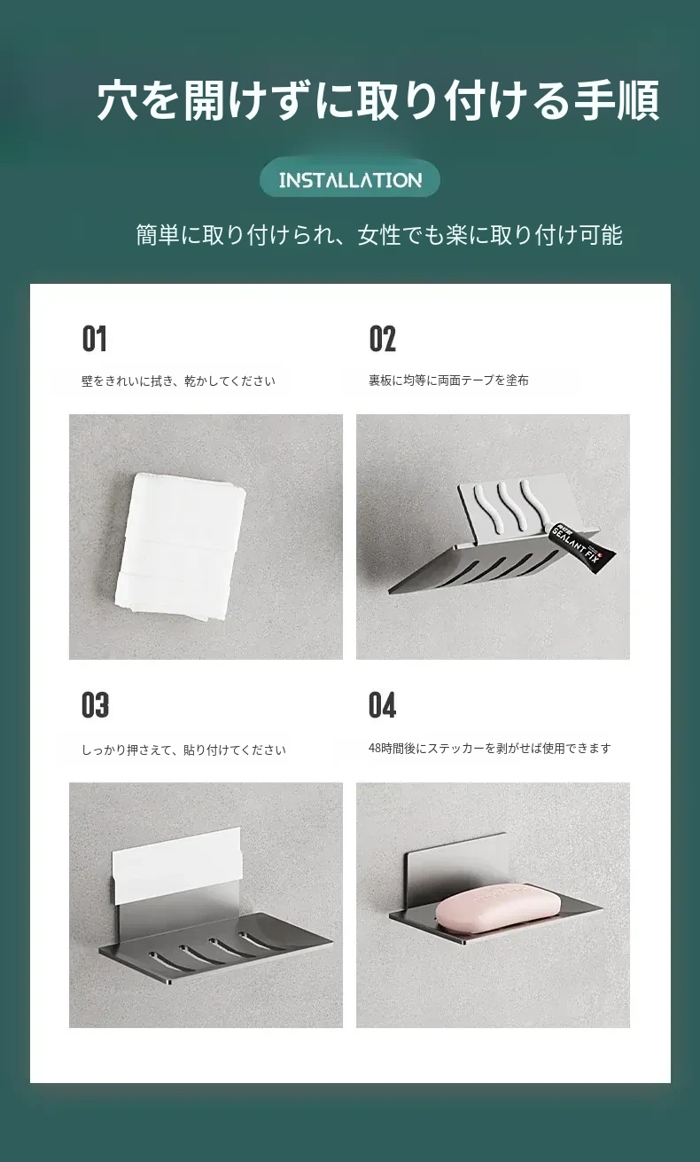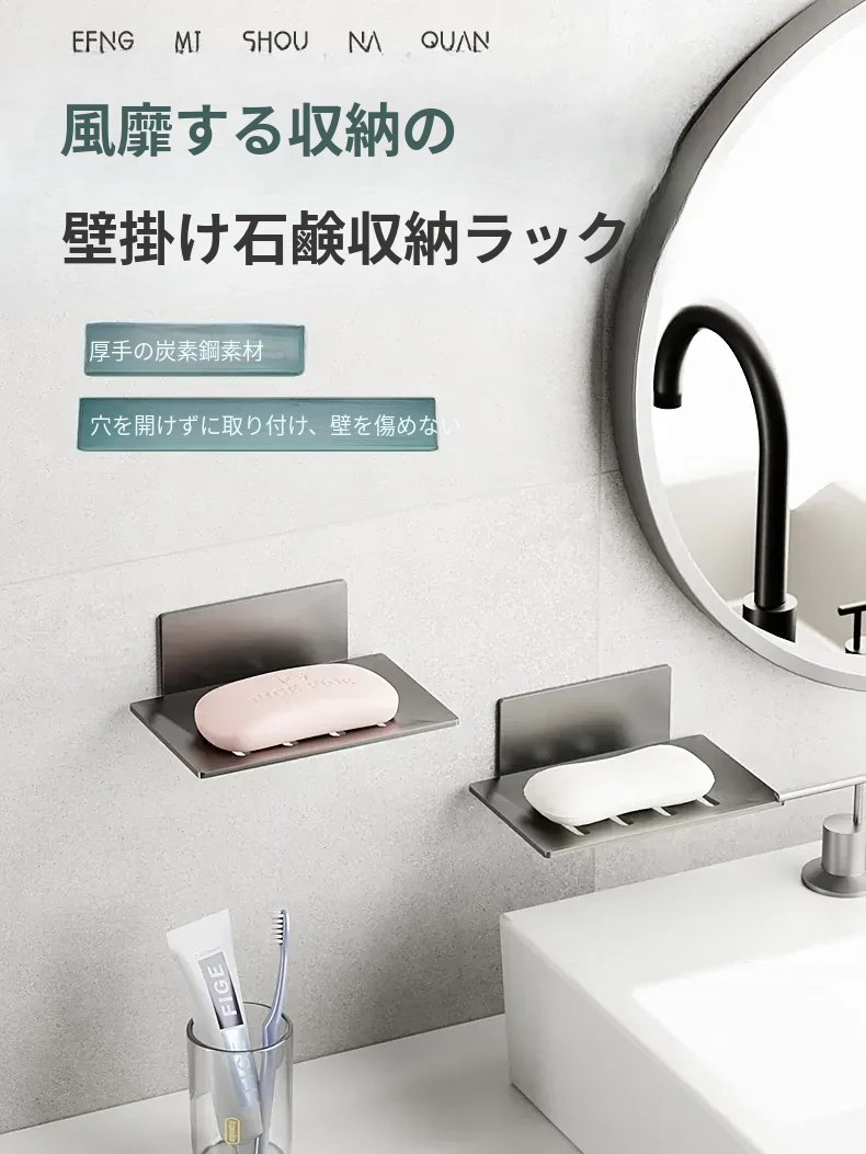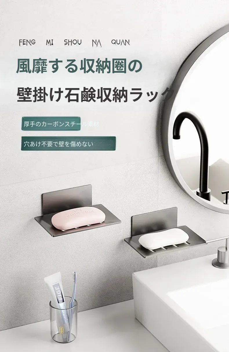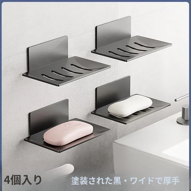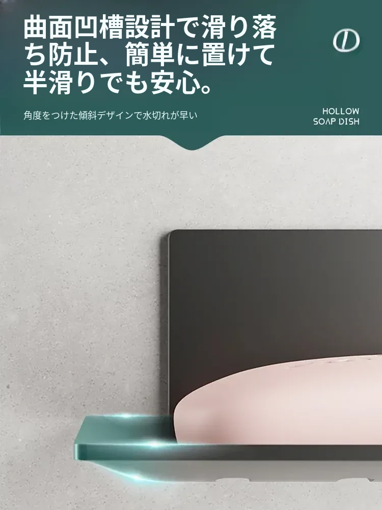壁掛けソープホルダー - おしゃれで便利な石鹸置き、浴室やトイレに最適!水切れ抜群で、穴あけ不要の簡単取り付け。清潔感あふれる空間を演出します!