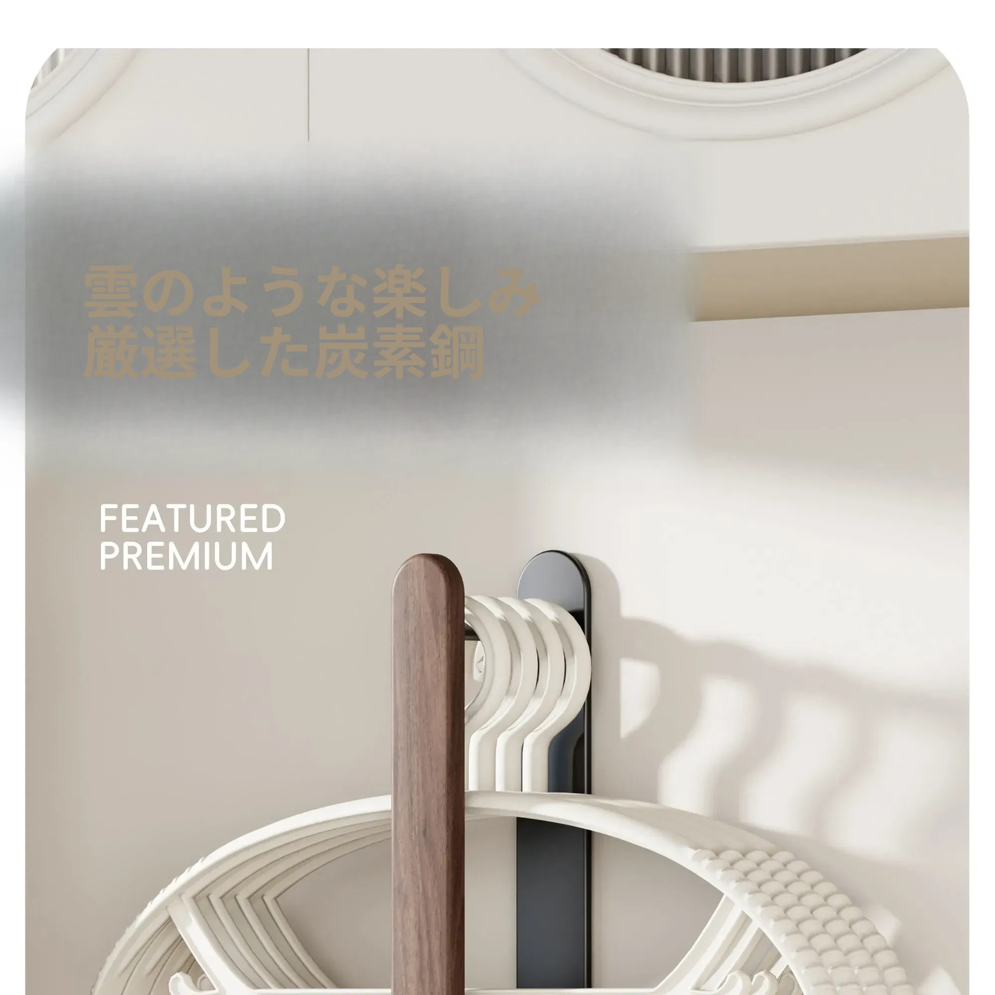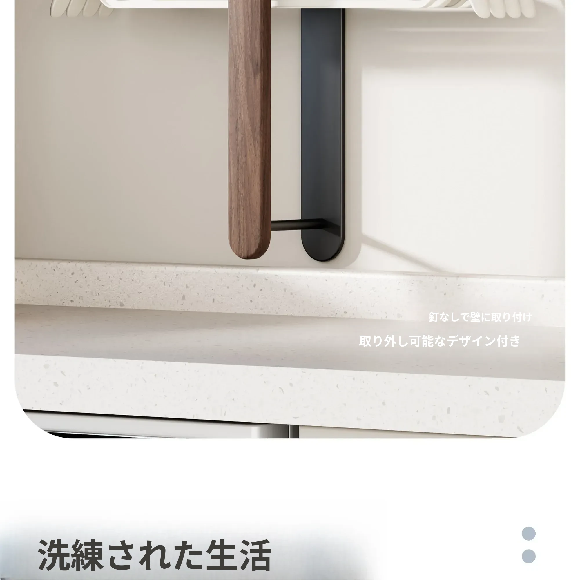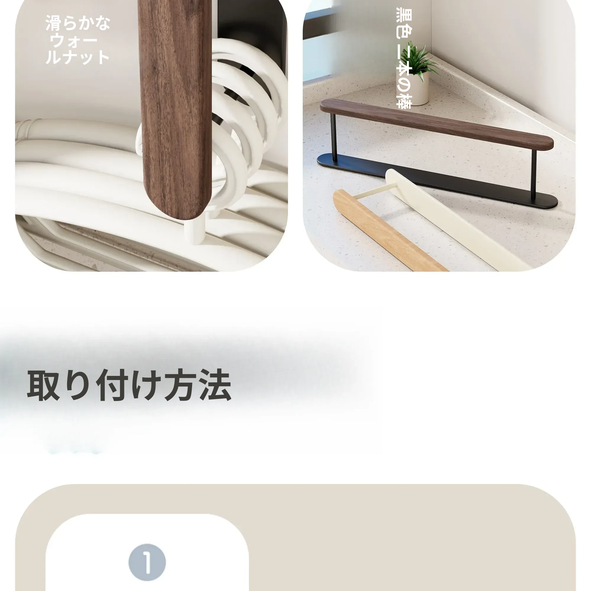 ウォールマウント式くるみ材ハンガー収納ラック - 穴あけ不要で、バルコニーや壁にピッタリ!おしゃれで実用的な衣類整理の必需品。家のスペースを有効活用!