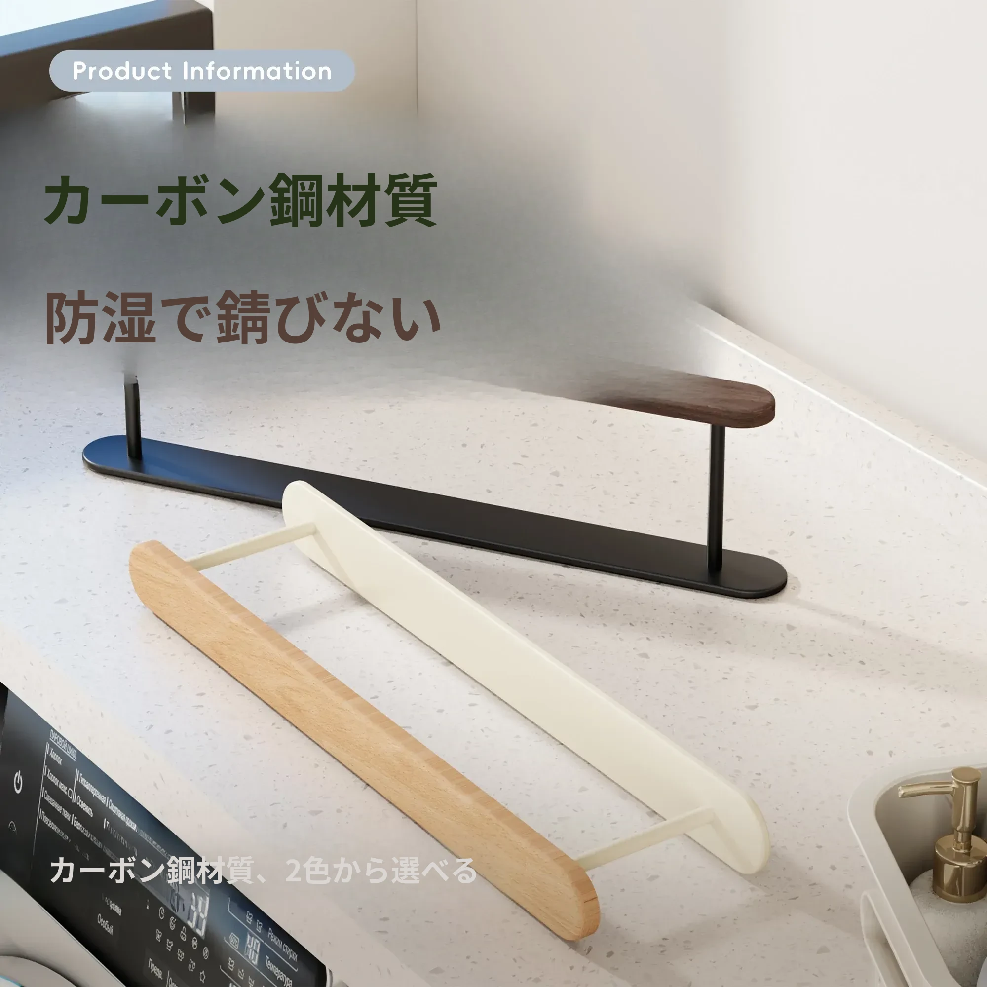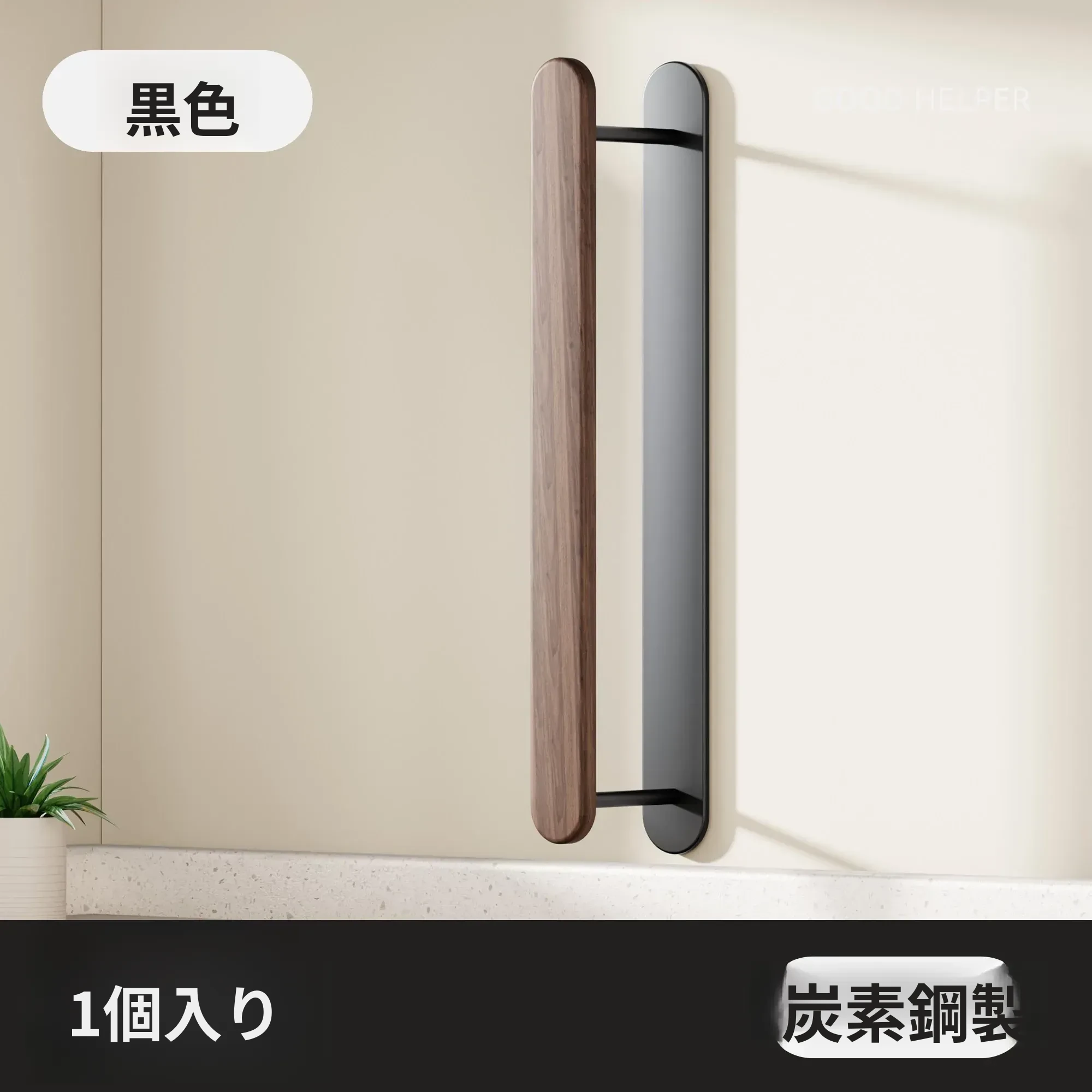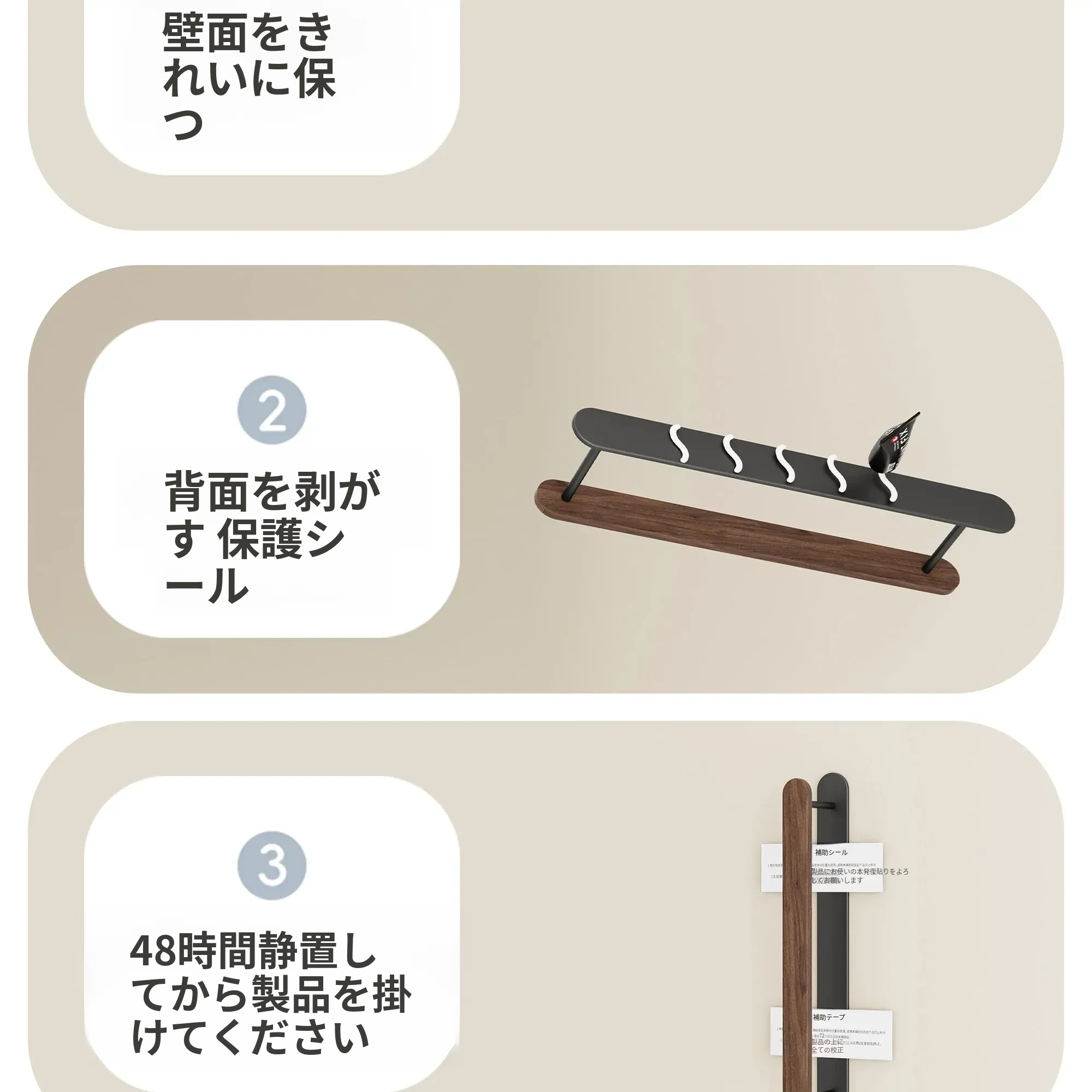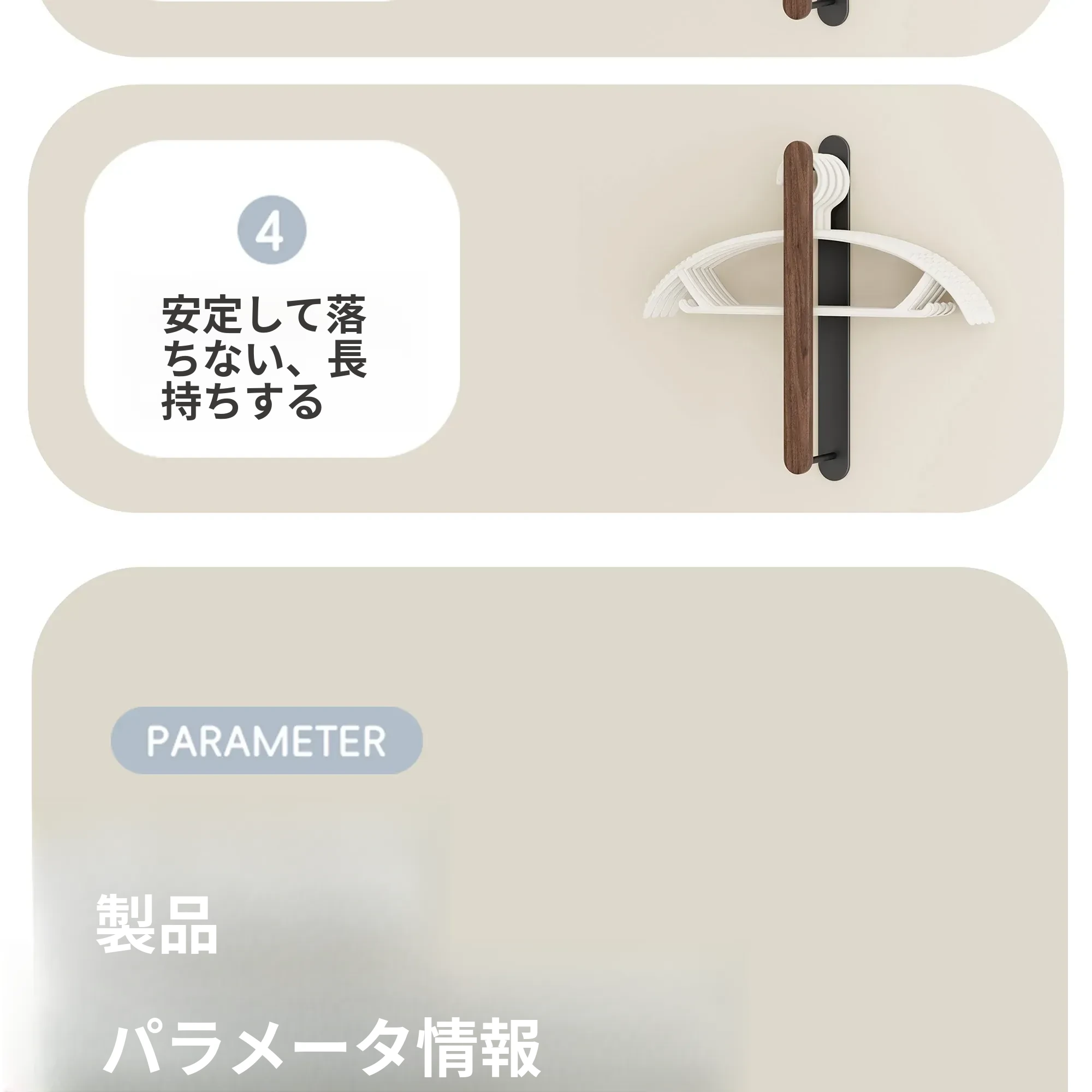 ウォールマウント式くるみ材ハンガー収納ラック - 穴あけ不要で、バルコニーや壁にピッタリ!おしゃれで実用的な衣類整理の必需品。家のスペースを有効活用!