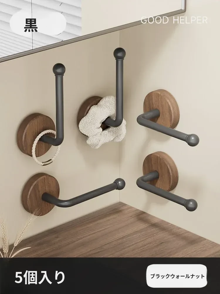 黒-ウォールナット【ヘアゴムフック5個入り】