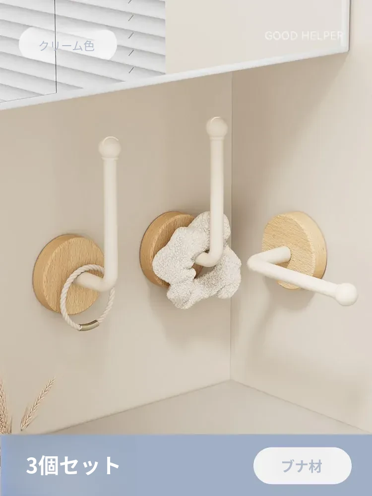クリーム風-ブナ【ヘアゴムフック3個入り】