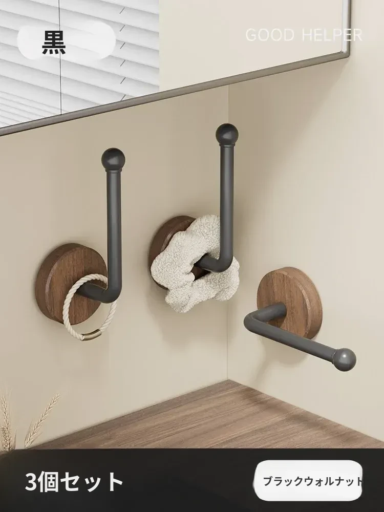 黒-ウォールナット【ヘアゴムヘアアクセサリーフック3個入り】