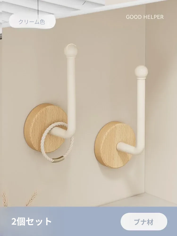 クリーム風-ブナ【ヘアゴムフック2個入り】