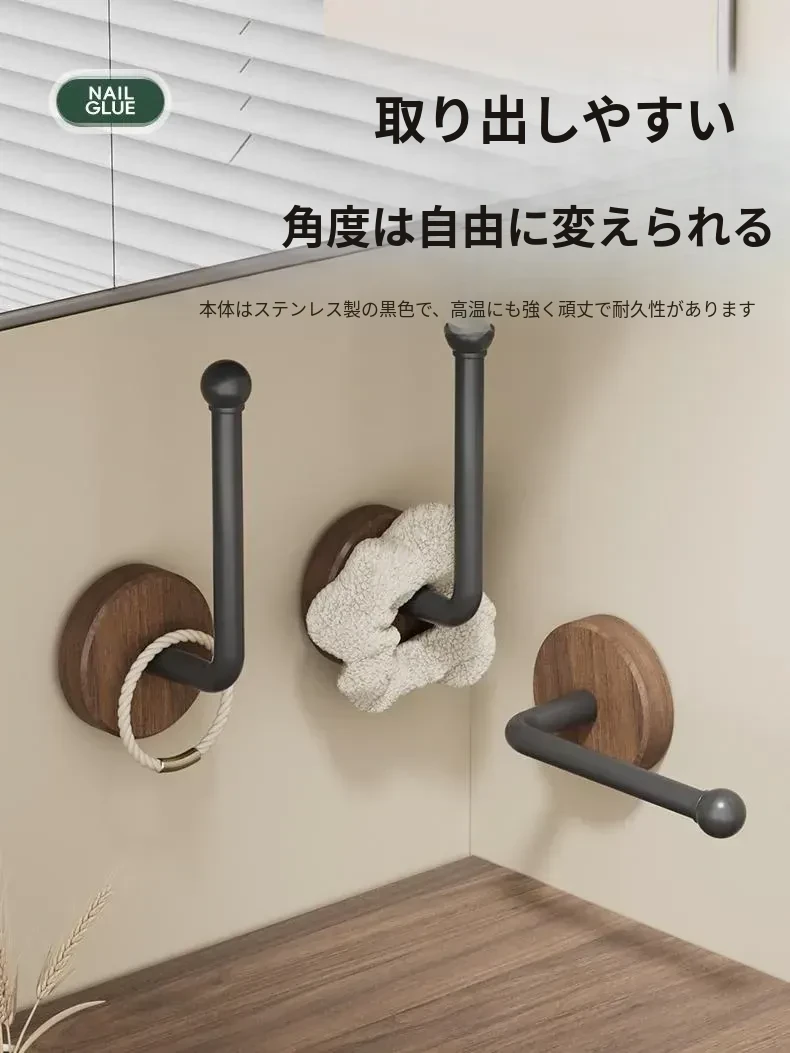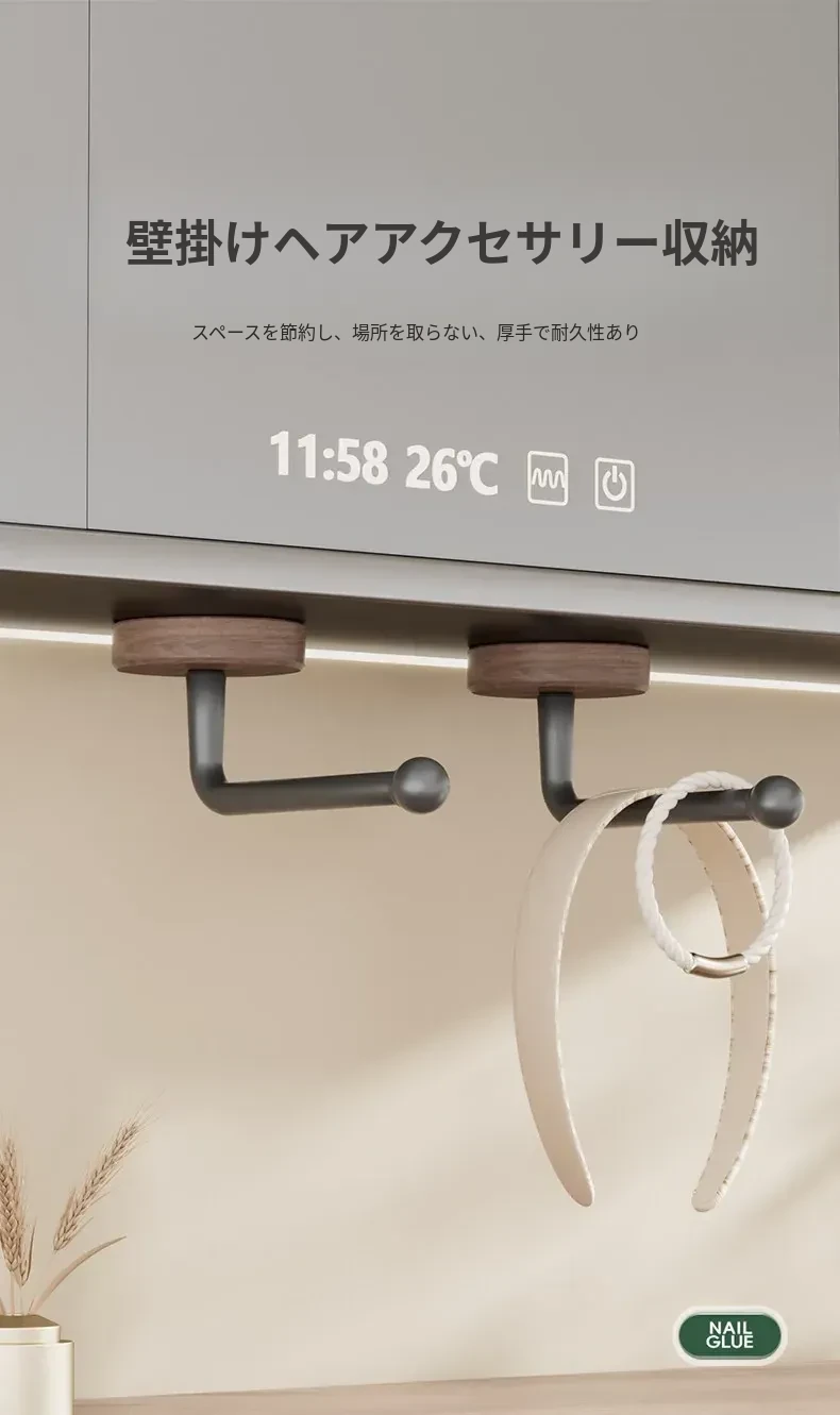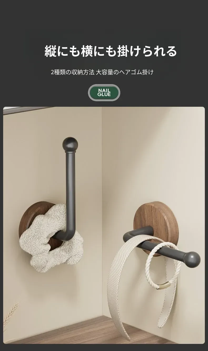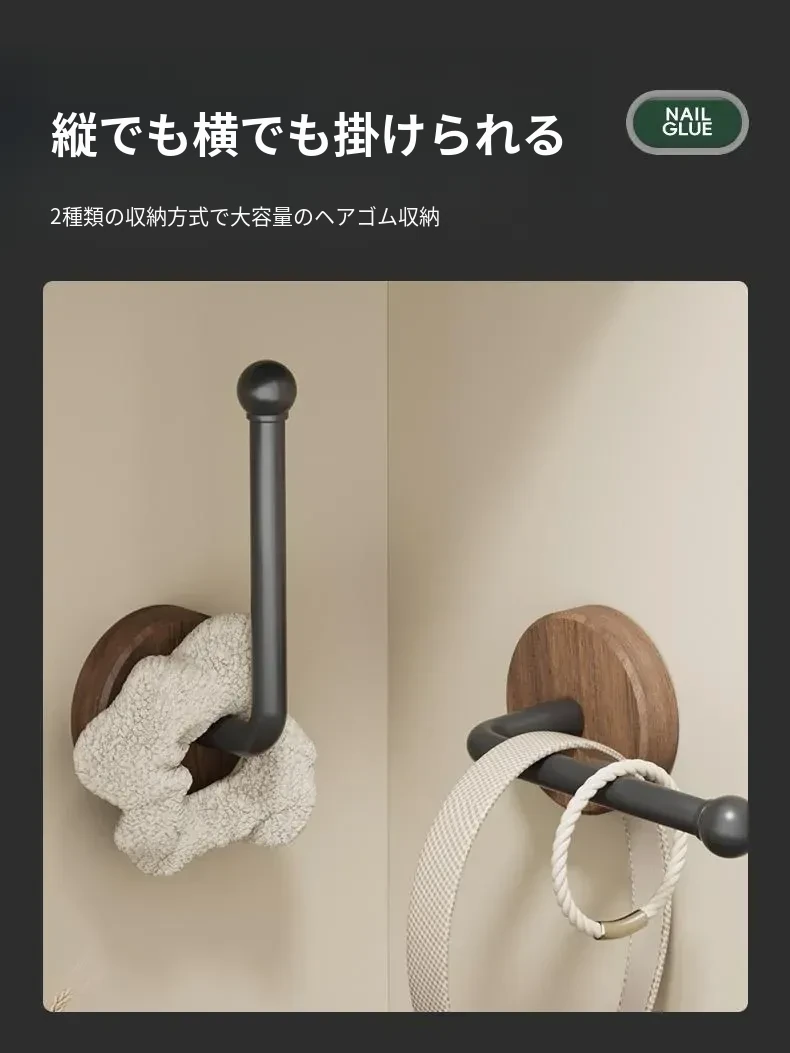 ウォールハンガー付きクルミの木製ヘアゴムフック - おしゃれで実用的なバスルームの必需品!強力な粘着力で、どこでも簡単に取り付け可能。髪飾りやアクセサリーの整理に最適!