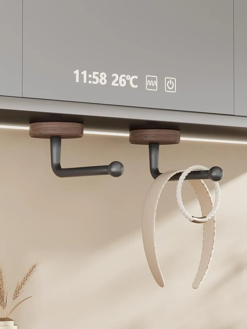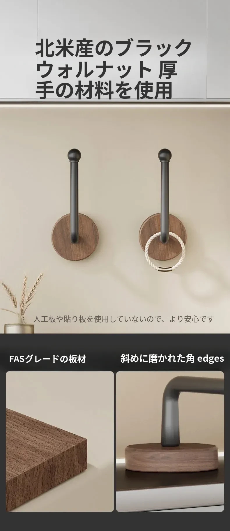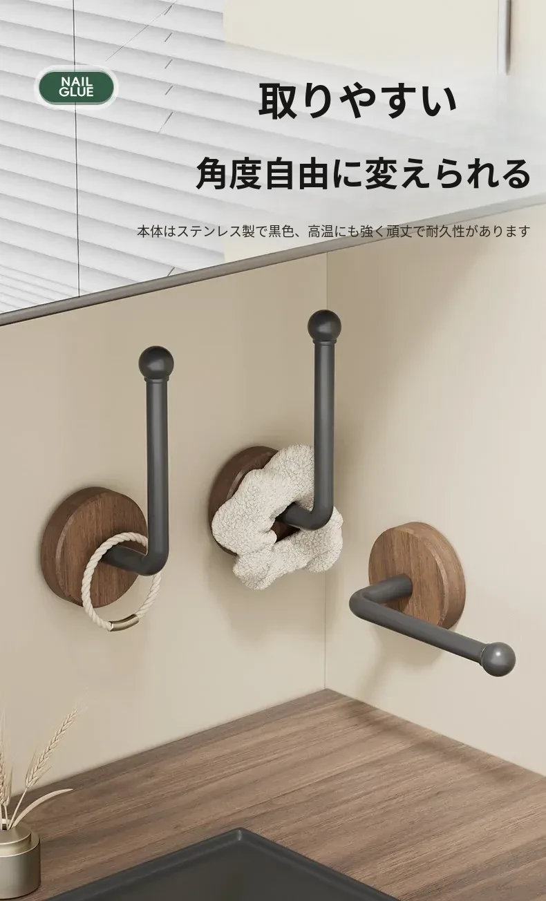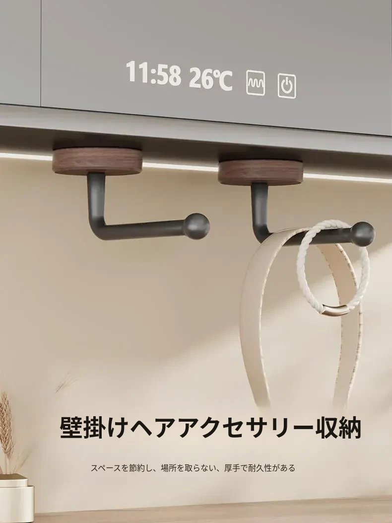 ウォールハンガー付きクルミの木製ヘアゴムフック - おしゃれで実用的なバスルームの必需品!強力な粘着力で、どこでも簡単に取り付け可能。髪飾りやアクセサリーの整理に最適!