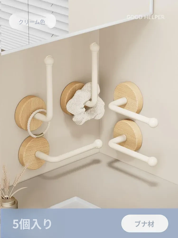 クリーム風-ブナ【ヘアゴムフック5個入り】