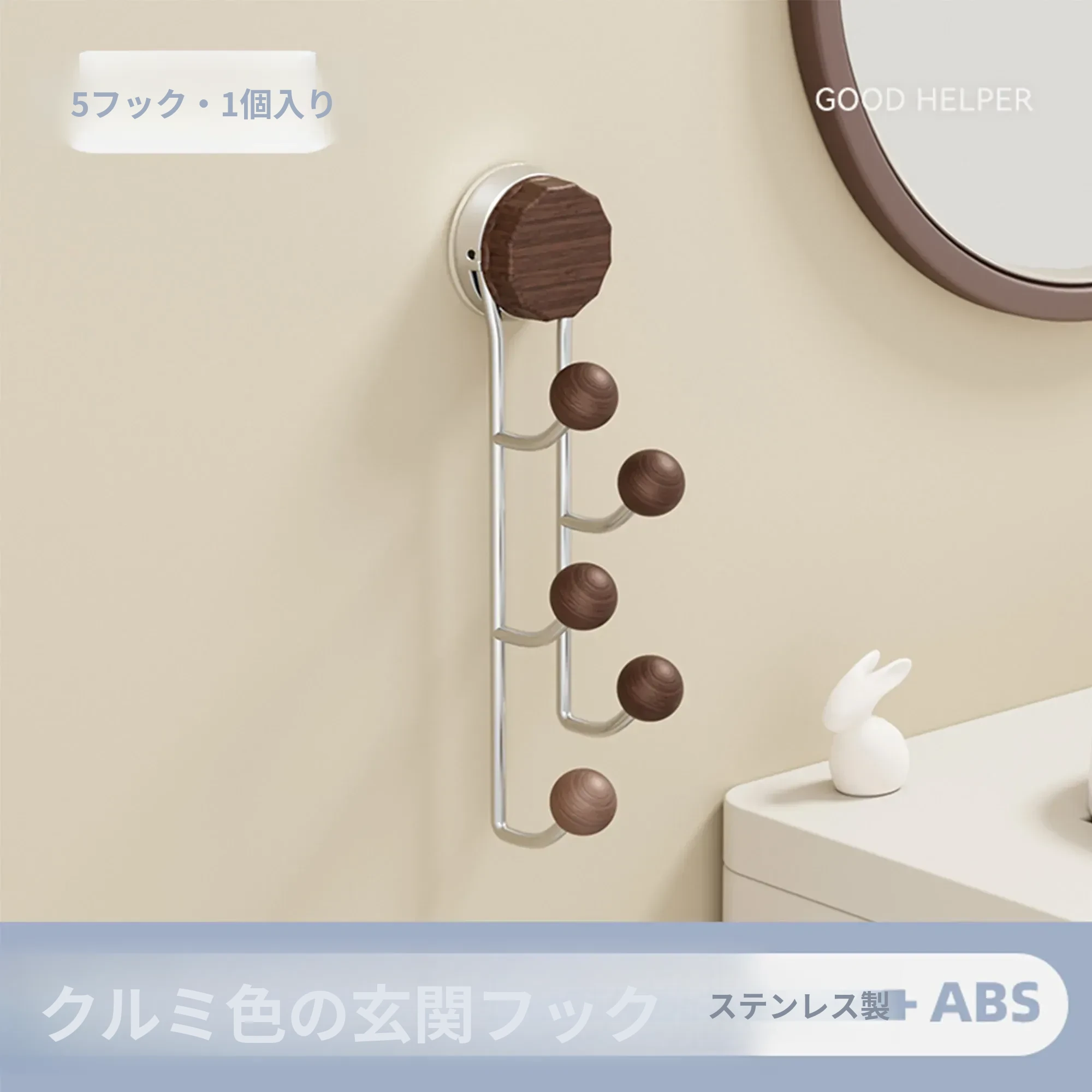 ウォールナット色【丸球フック5フック】1個入り