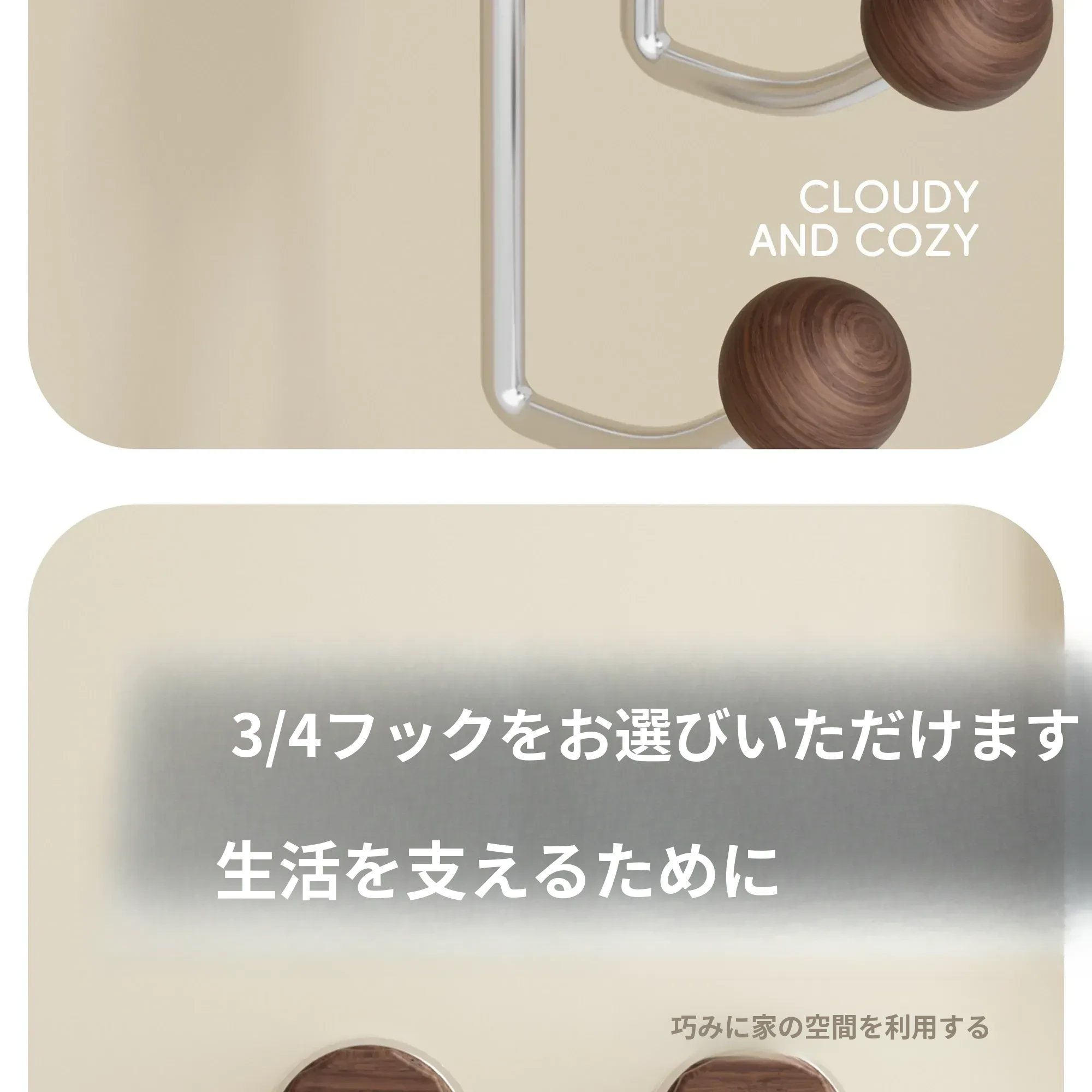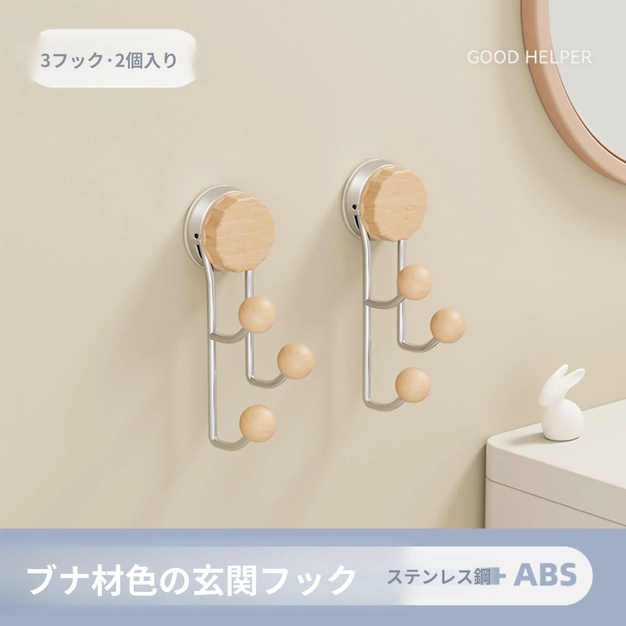 ブナ色【丸球フック3フック】2個入り