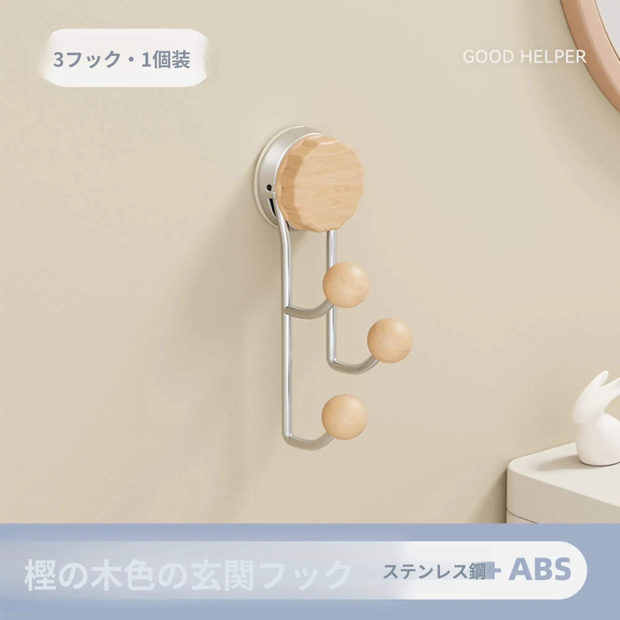 ブナ色【丸球フック3フック】1個入り
