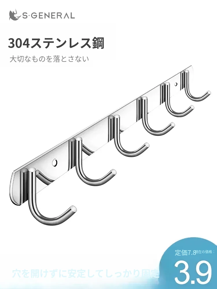 強力粘着フック - キッチン・バスルーム用壁掛けフック、304ステンレス製で耐荷重性抜群!穴を開けずに簡単取り付け、スッキリ収納でお部屋を美しく保つ!