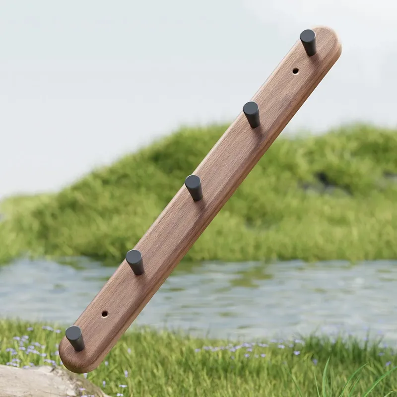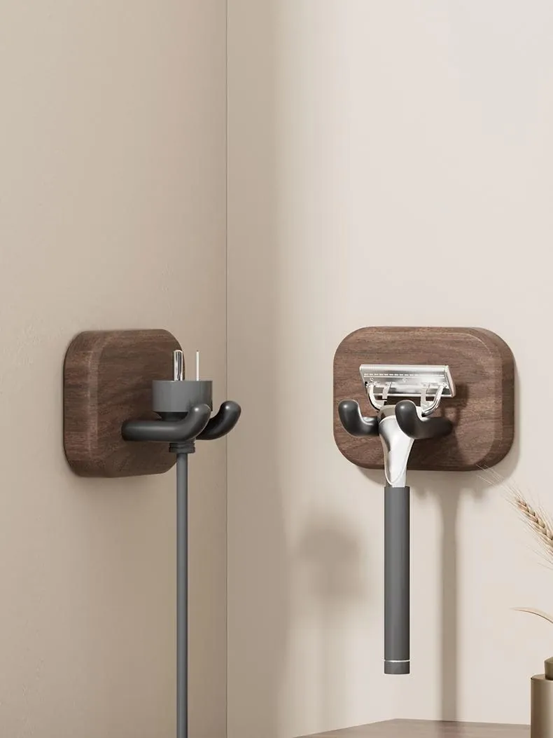ウォールマウント式の胡桃木製コートハンガー - 強力な粘着フックで、壁に穴を開けずに簡単取り付け!シンプルでおしゃれなデザインで、玄関やリビングに最適です。