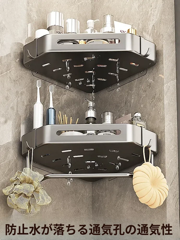 バスルーム用三角ラック - トイレやシャワールームに最適な壁掛けコーナー収納棚、穴あけ不要で簡単取り付け!おしゃれで機能的なスペースを実現します。