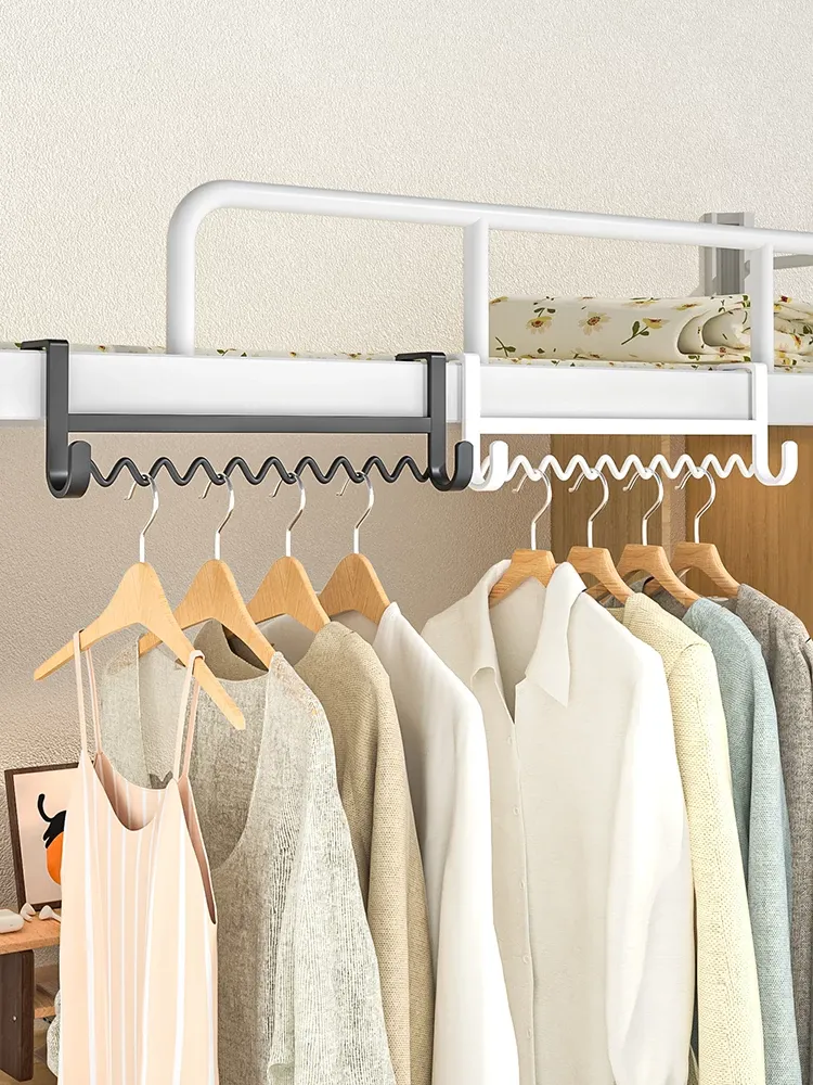 寮生活を便利に!波浪型衣類ハンガーで上下 bunk ベッドのサイドにぴったりの収納スペースを確保!クローゼットの隙間にもフィットする、使いやすい掛けフック付き!寝室をスッキリ整理整頓!