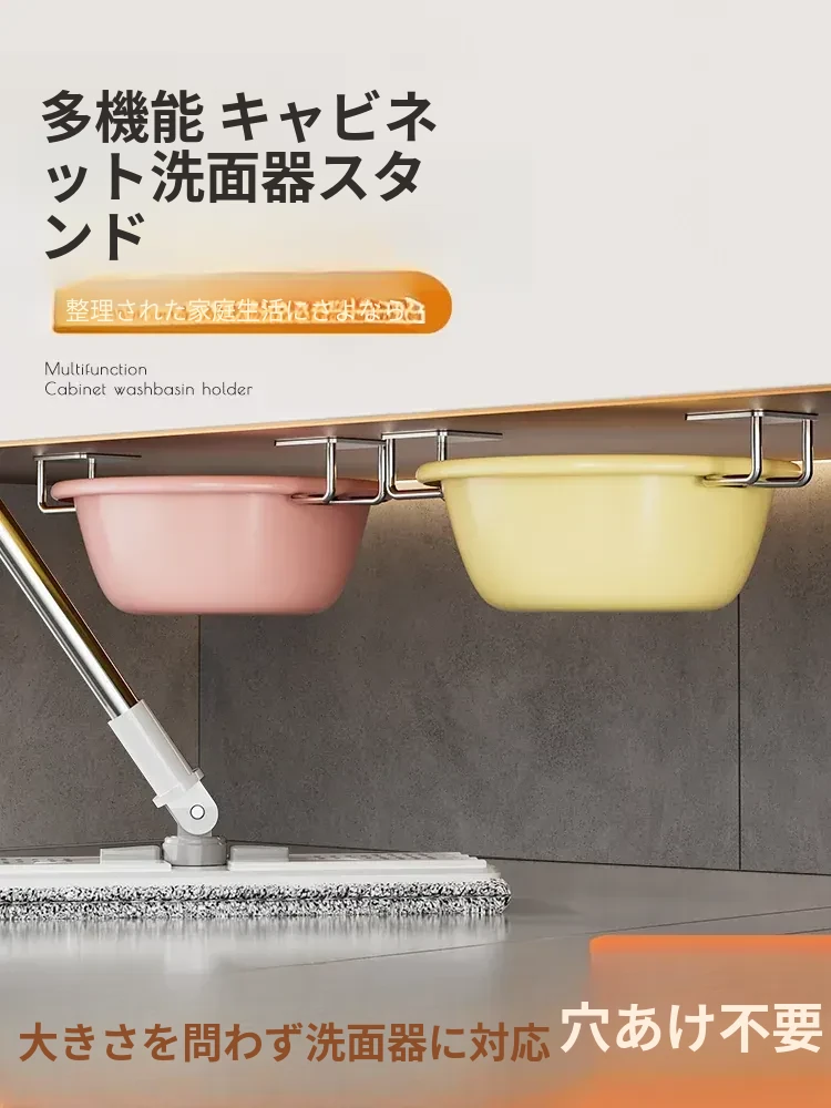洗面台下の収納ラック|穴あけ不要で簡単取り付け!バスルームやトイレに最適な浮遊式収納棚|洗面所をすっきり整理整頓!