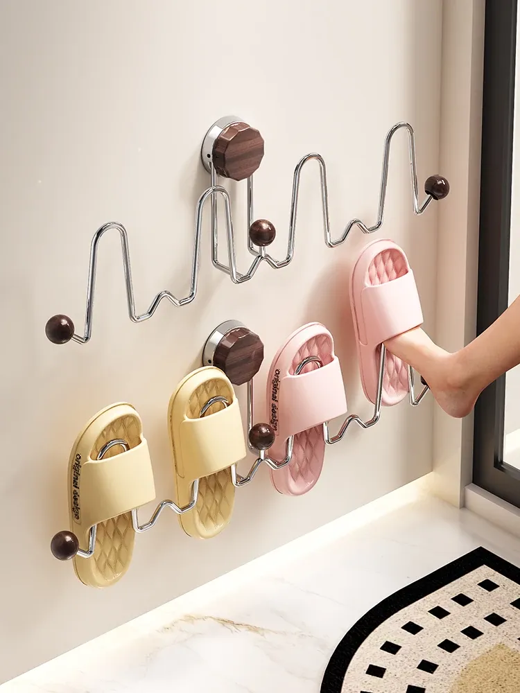 吸盤式スリッパラック 壁掛けトイレ・バスルーム用 取り付け不要!スリッパ収納に最適な便利グッズ!おしゃれで省スペース、靴をスッキリ整理!