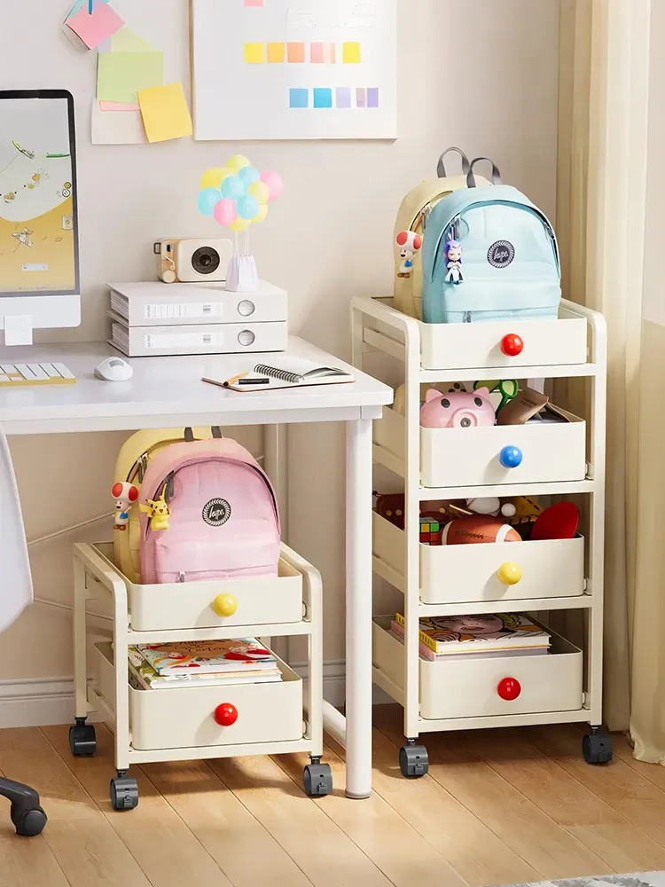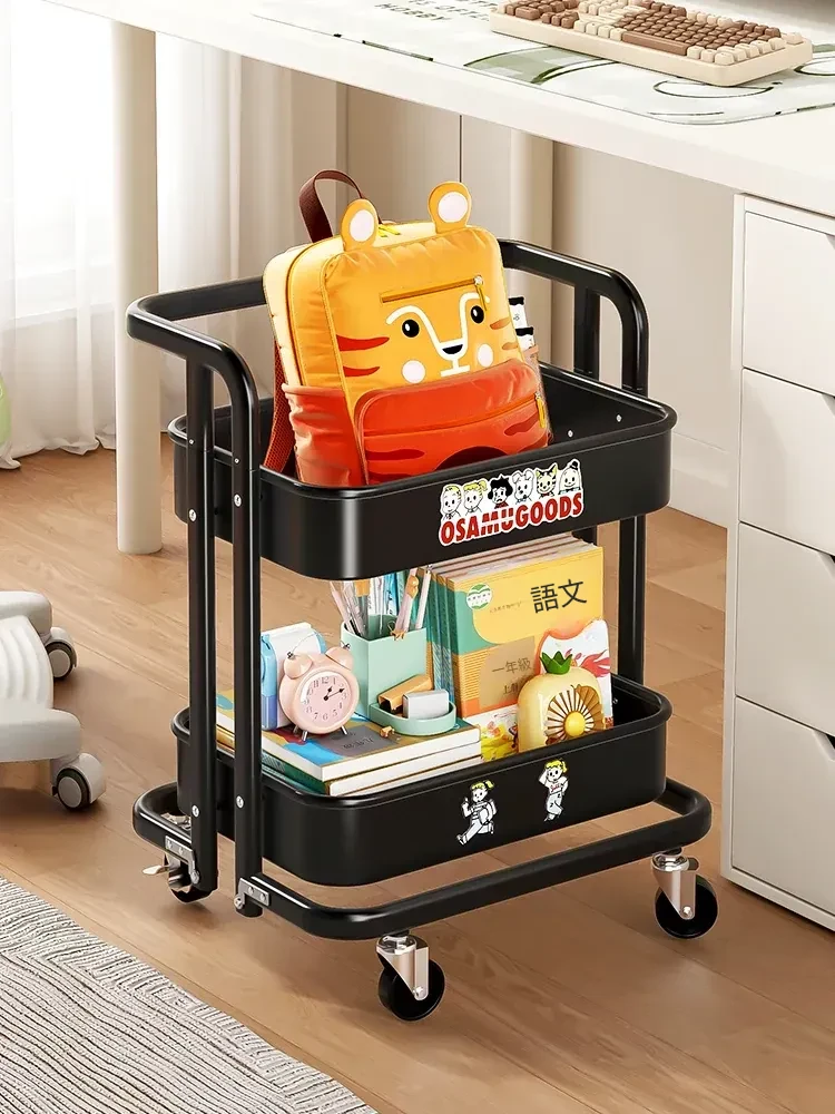 フリンスの書籍収納ラック - 移動可能な小型カート!小学生・中学生必見の教科書整理アイテム、デスク下にぴったりの収納バスケットで、学びをもっと快適に!