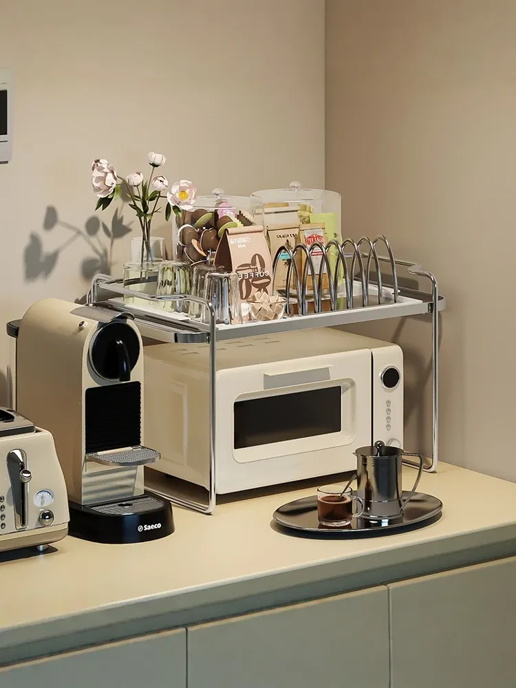 インスタ映えするキッチン用電子レンジオーブンラック - デスクトップ収納スタンド、炊飯器や鍋をすっきり整理!多層設計でスペースを有効活用し、便利でスタイリッシュなキッチンを実現!