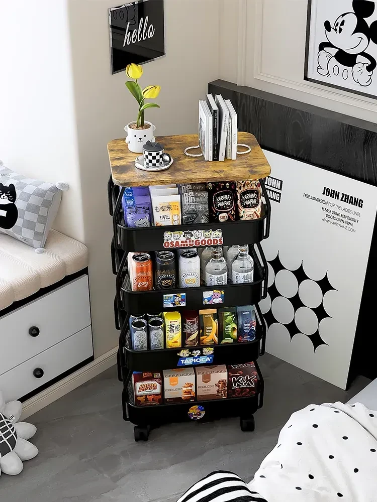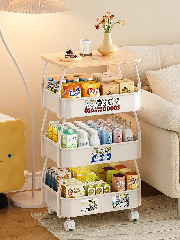 フリンスおしゃれスナック収納ラック - 家庭用リビングに最適!高品質で移動可能な多段式収納カートで、あなたの生活空間をスタイリッシュに整理整頓。省スペースで便利な収納ソリューションをお楽しみください!