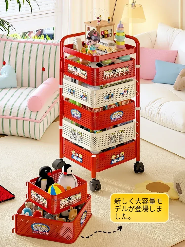 ドーパミンキッズおもちゃ収納ラック - 移動式小型カート、多層ボックスで赤ちゃんの車内整理に最適!お部屋もスッキリ、遊び心満載の収納ソリューション!