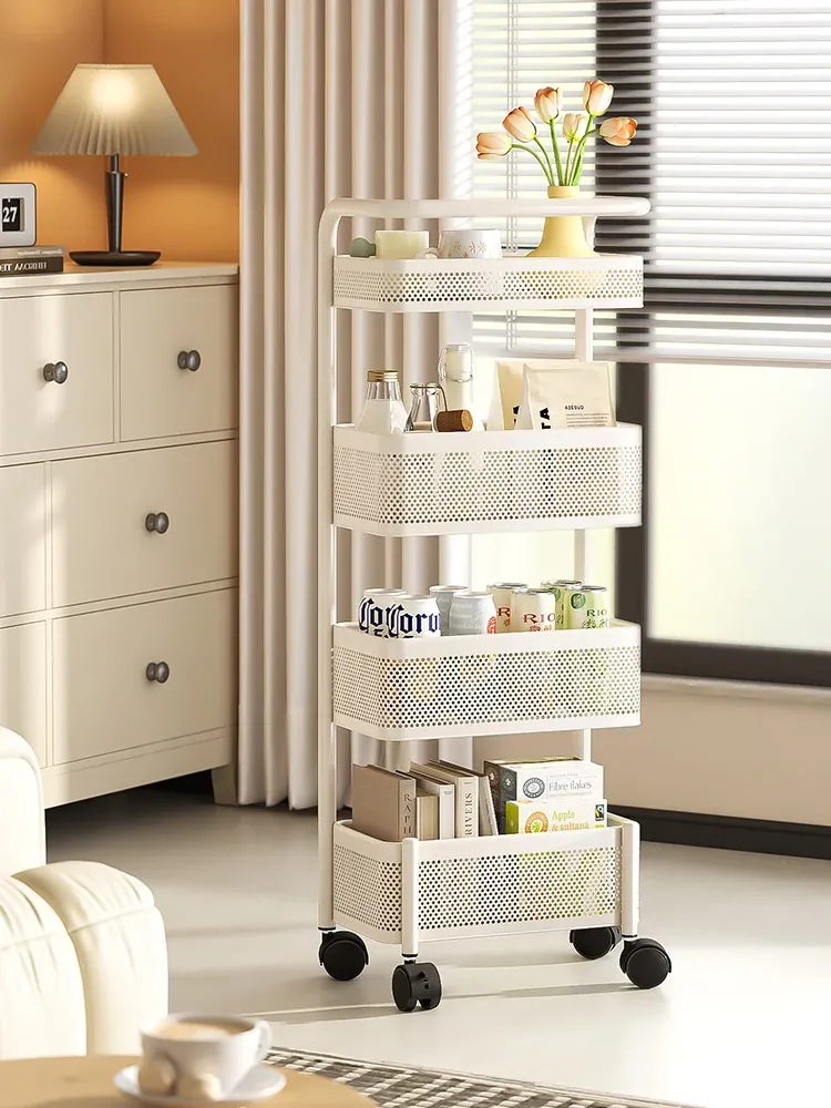 フリンスの小型キャリーラック - 多層式家庭用収納キャビネット!リビングルームや隙間にぴったり、書籍やスナックをおしゃれに整理整頓。移動も簡単で便利な収納アイテムです!