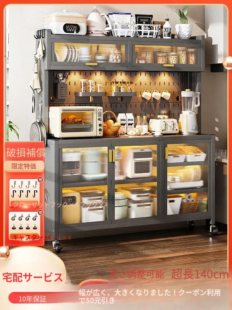 多機能キッチンラック - オーブンや電子レンジに最適!収納力抜群のフロアタイプ・多層食器棚で、キッチンをスッキリ整理。魅力的なデザインで、使いやすさも抜群!