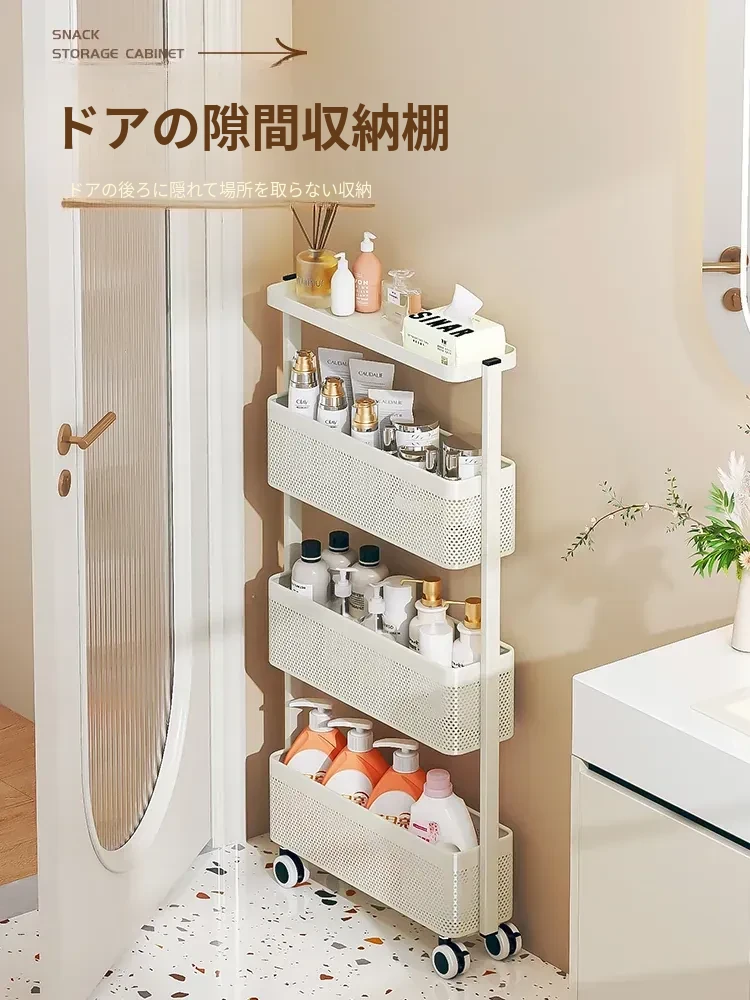 フリンス門後超薄収納ラック - トイレの隙間にぴったりなスリムな小型カート!多層収納でスペースを有効活用し、トイレ周りをスッキリ整理!