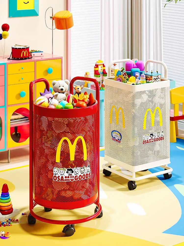 フリンスぬいぐるみ収納バスケット 大容量でおもちゃ整理も簡単!おしゃれなデザインのランドリーバスケット 小さなカート付きで便利な収納ボックス