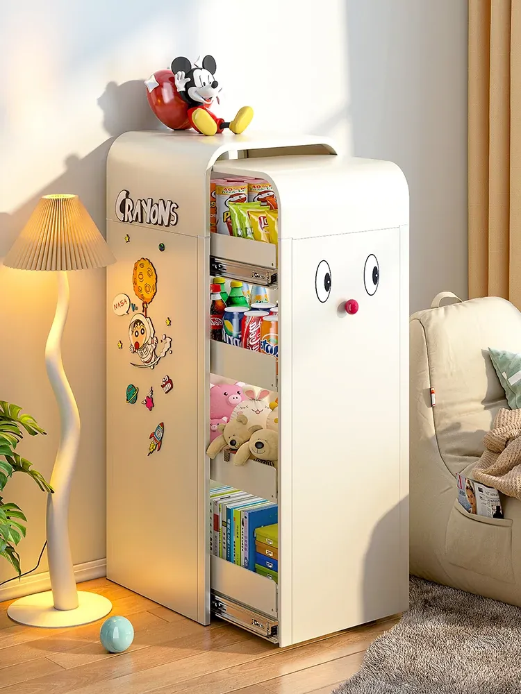 フリンズおしゃれ収納キャビネット - リビングや寝室にぴったりな引き出し式のスナック収納ラック!狭いスペースにもフィットする高デザインの収納家具で、毎日の生活をスタイリッシュにサポートします。